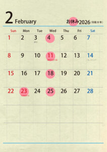 ホーム > 12月・1月(成人の日は営業しております)・2月
